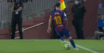 第28分钟,梅西边路上演轻巧挑球过人躲过铲断。