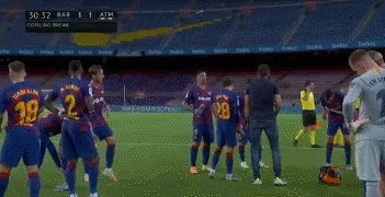 但科斯塔主罚被特尔施特根扑出,不过VAR观看录像后认为巴萨门将提前移动。