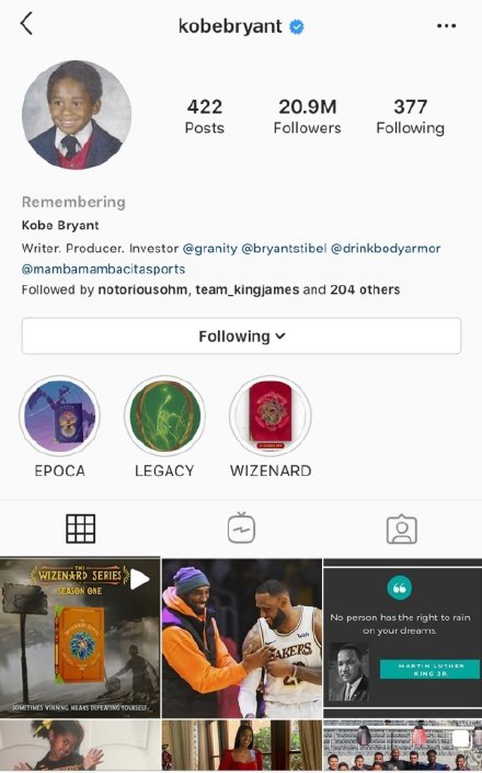 科比的INS账户正式被设为Remembering缅怀 状态,根据INS的规定:家属可以通过填写申请表格,保护离去天使的ins账户,帐户开启缅怀功能后,任何人将无法登录,无法发布或删除任何帖子。 账户不会被推送到推荐浏览的页面上,但朋友仍可评论、留言。