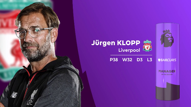英超官方宣布,利物浦主帅克洛普当选2019/20赛季英超最佳教练。在该奖项的评选中,克洛普击败切尔西主帅兰帕德、莱斯特城主帅罗杰斯、谢菲尔德联主帅怀尔德最终当选。