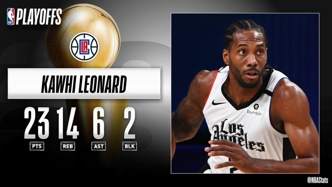 全场比赛,伦纳德出场42分钟,19投9中,三分球6投1中,得到23分14篮板6助攻2封盖,带领球队以113-107击败掘金。