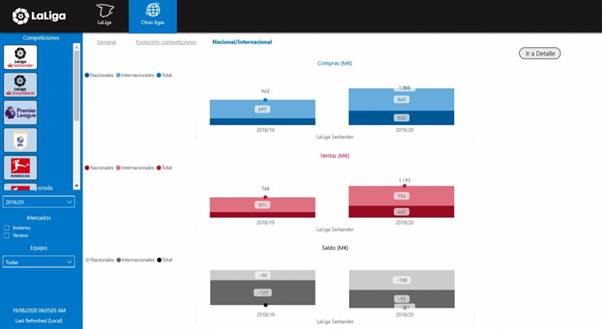 西甲联盟开发了转会市场数据中心这一全新的数据查阅工具,用以查阅五个赛季内各俱乐部的支出活动。数据中心涵盖了欧洲五大联赛的第一级别及第二级别赛事,以便西班牙俱乐部可以和各地的竞争对手进行比较。