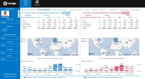 转会市场数据中心是西甲联盟独家开发的技术工具,并且延续了西甲联盟基于权威数据做出决策的战略路线。通过使用这一工具,俱乐部可以查阅其他俱乐部的球员购买及出售情况,以及球队当下球员的完整数据。值得一提的是,数据中心还可以查看英国、法国、德国或意大利的各俱乐部用以购买球员的支出情况。