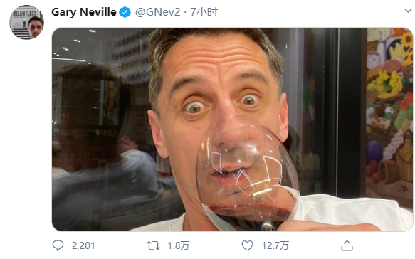 实际上利物浦半场1-4落后时,内维尔已经举起酒杯准备庆祝了: