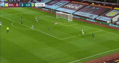 比赛第55分钟,利兹上演一波强势进攻,班福德在右路前插至后点,队友射门被扑出后,无人盯防的班福德完成补射: