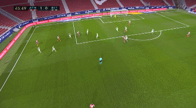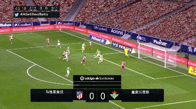 下半场开场仅仅20秒,略伦特突入禁区零度角破门!马竞1-0贝蒂斯!