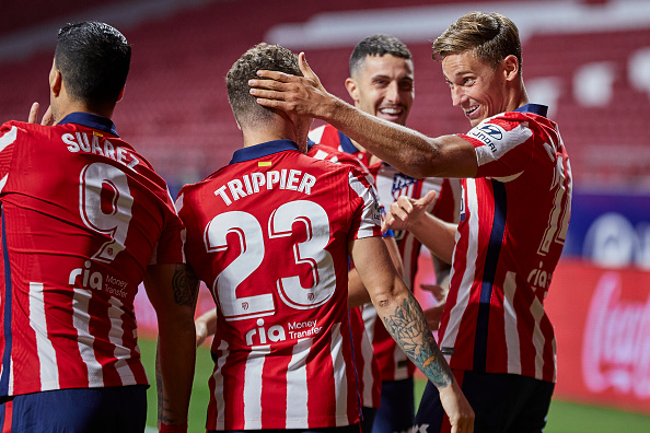 马竞首发:13-奥布拉克、22-埃尔莫索、18-费利佩、15-萨维奇、23-特里皮尔、11-勒马尔、6-科克、5-托雷拉、14-略伦特、10-科雷亚、9-苏亚雷斯