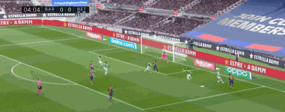 此役开场仅4分钟,法蒂前场断球后在禁区右侧下底回传,格列兹曼在无人防守的情况下内切后一脚抽射偏出左侧立柱: