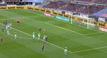 第26分钟,法蒂左路横敲,佩德里脚后跟磕球,格列兹曼后插上的打门再次擦着立柱偏出: