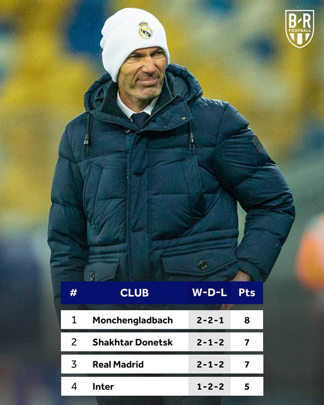 7、皇马负,国米胜:门兴11分第1,国米8分第2,矿工7分第3,皇马7分第4