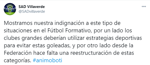 皇马方面发布的战报中没有写出比分,只写了鲁本-巴里奥斯(U9主帅)带队取胜,以示对对手的尊重。但比拉韦德队难以忍受这种屈辱,在社交媒体上对赛制提出了抗议。